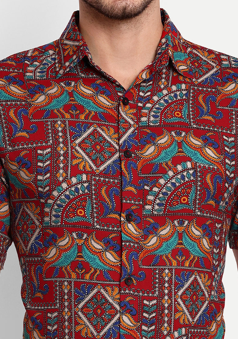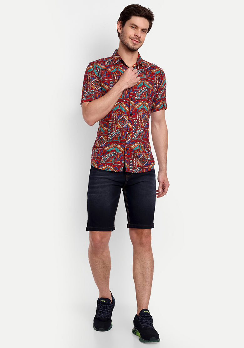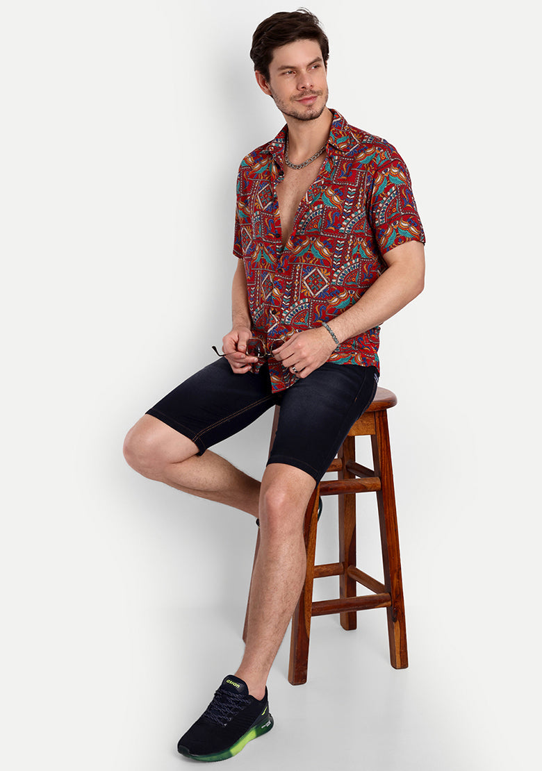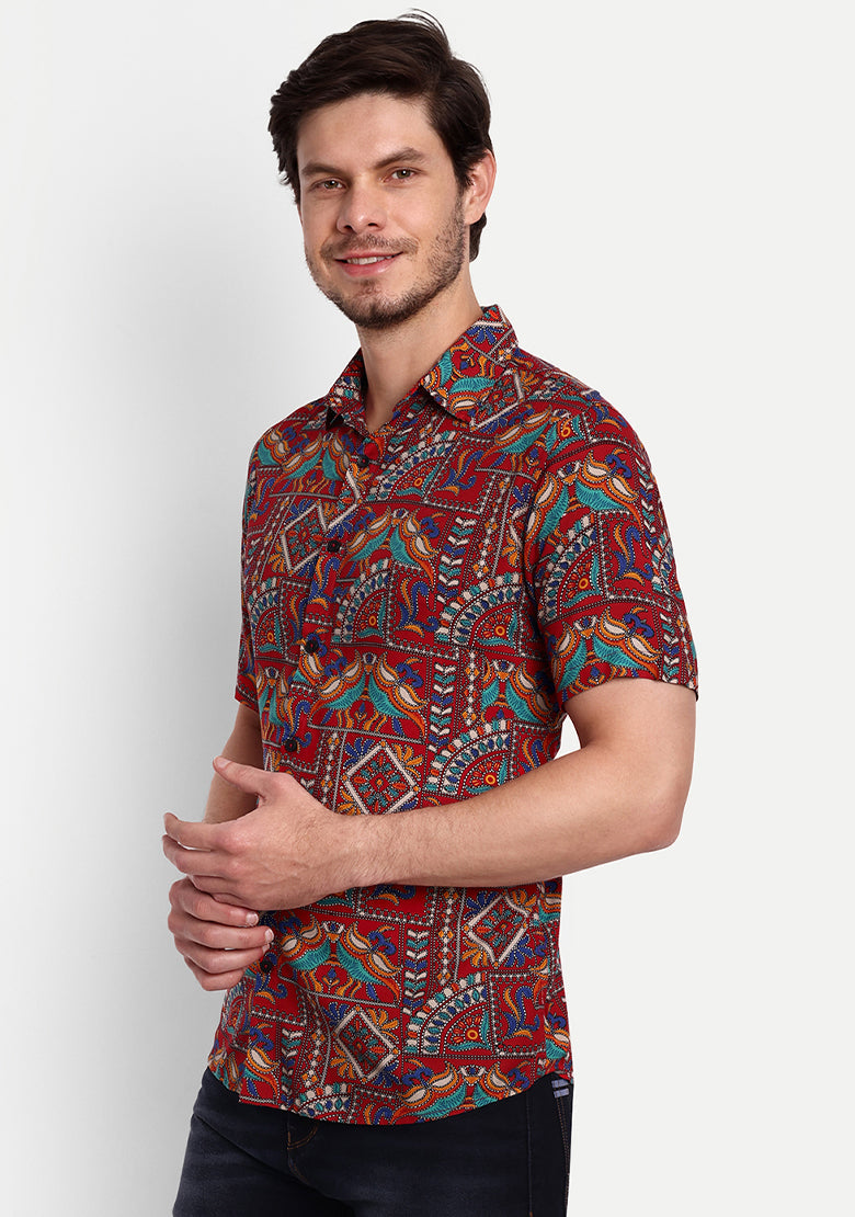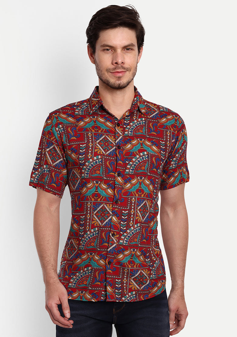 The shirt is made from high-quality viscose rayon fabric that is both lightweight and breathable, ensuring that you stay cool and comfortable all day long. The curved hemline adds a touch of modern style, making it perfect for pairing with slim-fit jeans, trousers, or chinos for a stylish and effortless look.