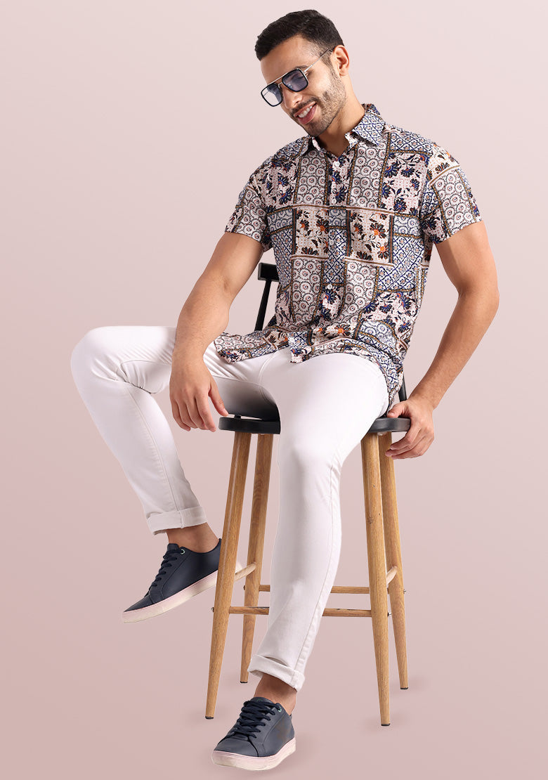 This stylish and comfortable short-sleeved shirt is perfect for any casual occasion, especially during the summer months. It features a regular fit that is both comfortable and flattering, as well as a spread collar and button closure that gives it a classic, polished look.