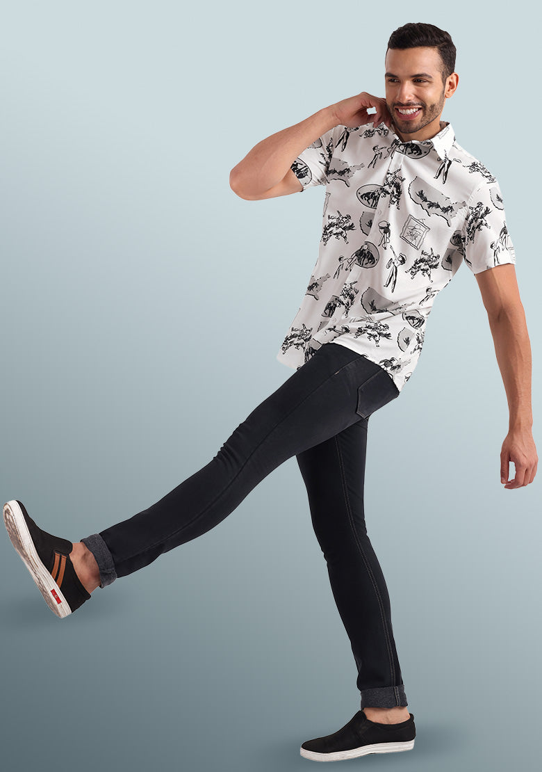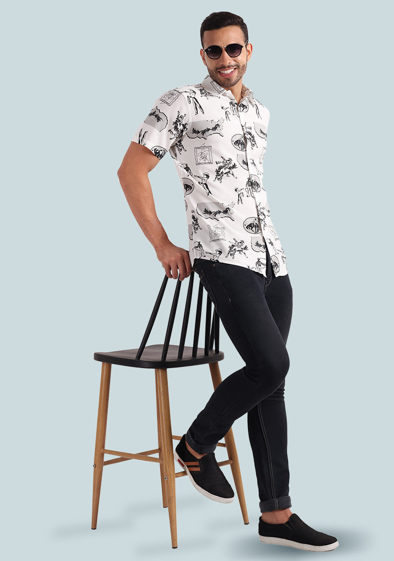 For an effortless and trendy look, pair this horse print shirt with slim-fit jeans, trousers, or chinos. Let your unique style shine through and make a fashion statement that stands out from the crowd.