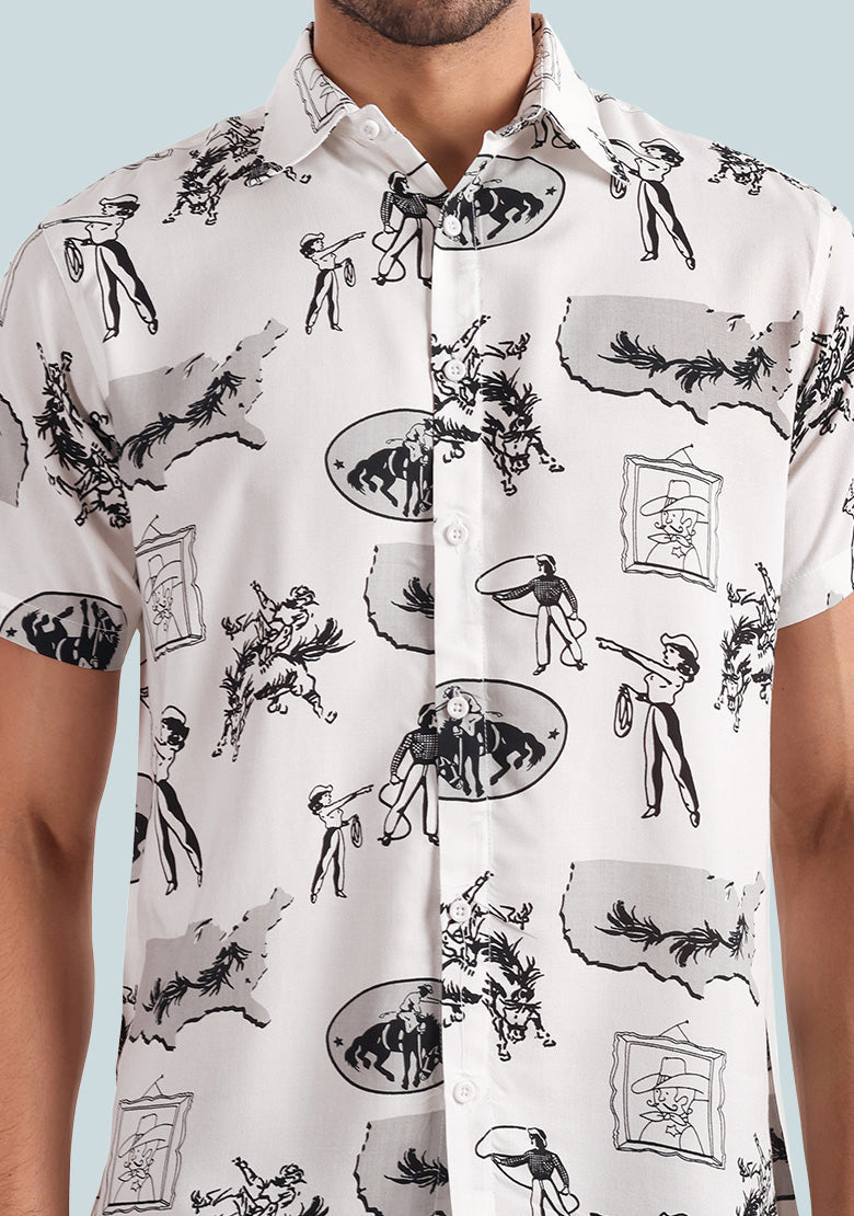 Upgrade your wardrobe with the BhuviKoo Printed Button-Up Shirt in a captivating multicolor design with a striking horse print. Experience the perfect blend of comfort, style, and versatility with every wear.