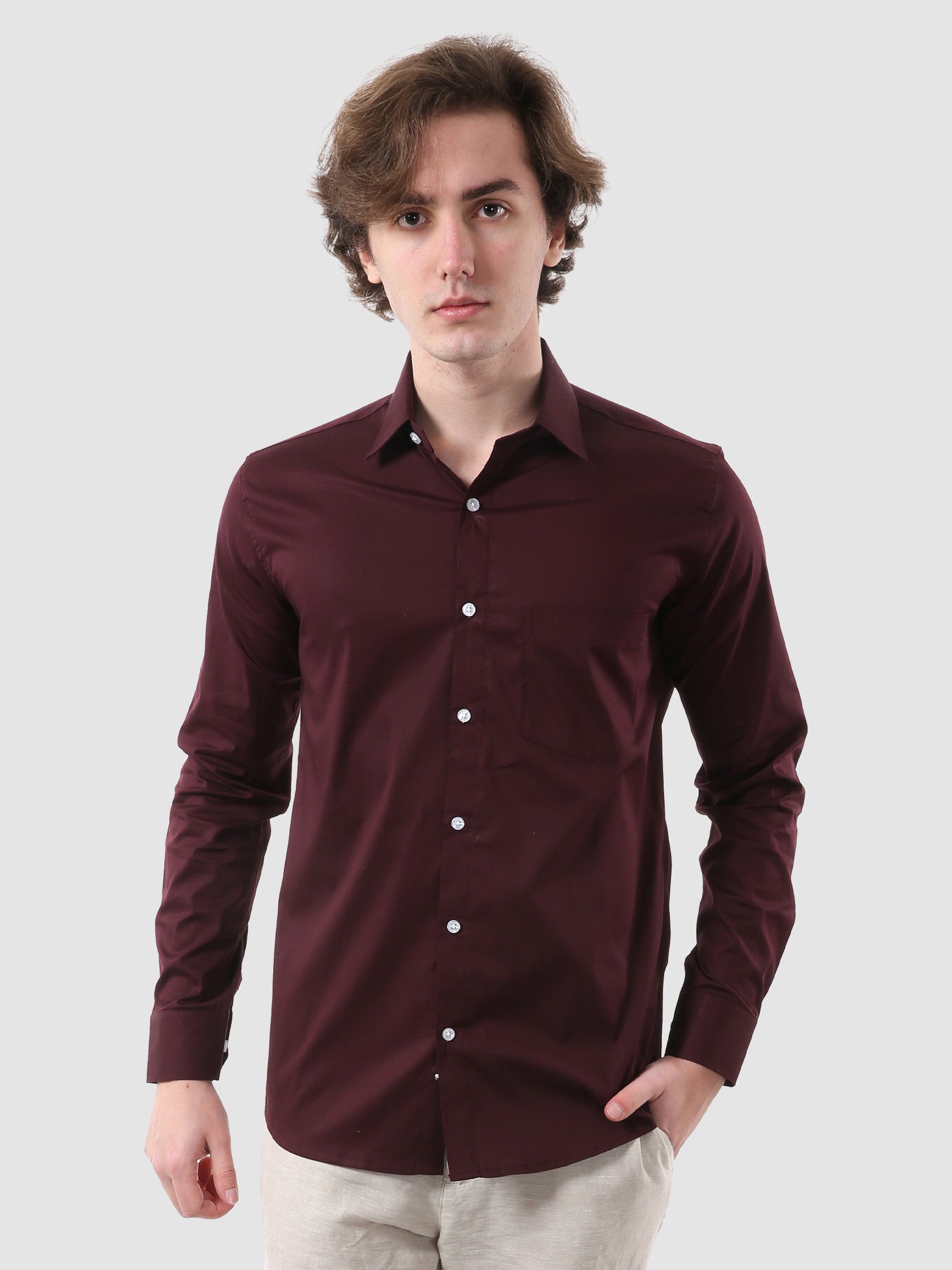 - This stylish and sophisticated Men Formal Full Sleeve Maroon Color Plain Shirt is a must-have for any wardrobe.