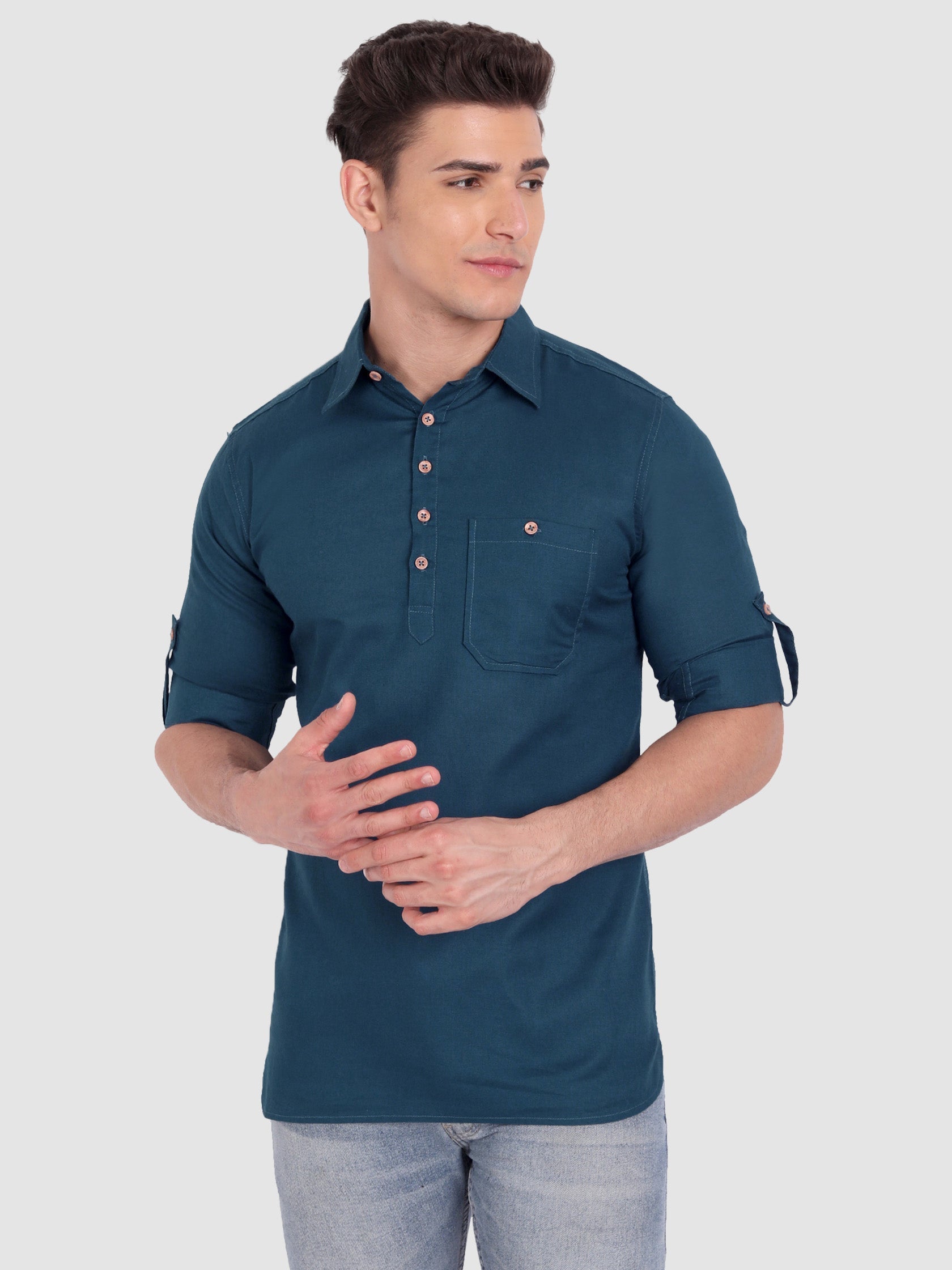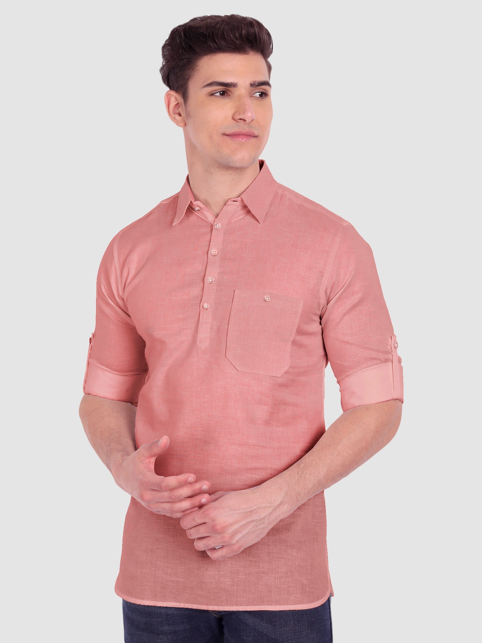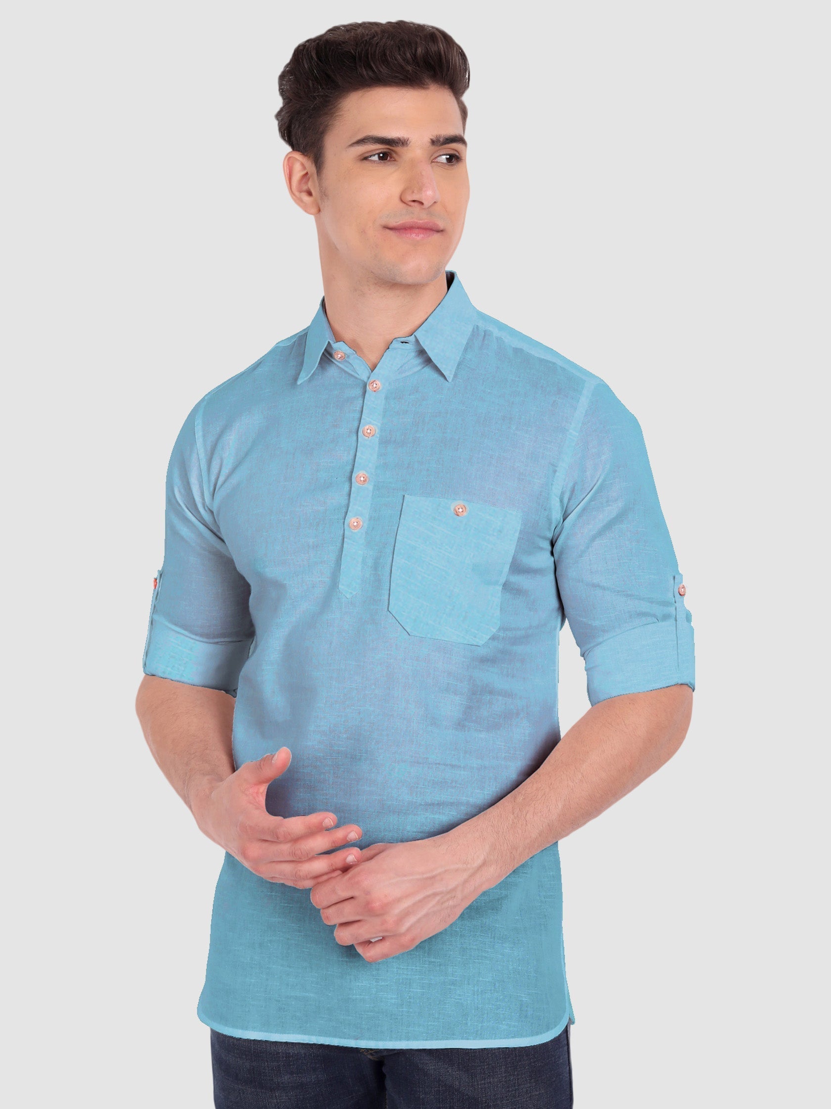 This Men's Full Sleeve Casual Cotton Short Kurta is a stylish and comfortable piece of clothing that is perfect for any casual occasion. Made with 100% cotton fabric, it is soft and breathable, making it ideal for all-day wear. The curved hemline and spread collar give it a smart and sophisticated look, while the button closure ensures a comfortable and secure fit. The full roll-up style sleeves make it easy to adjust the length of the sleeves to suit your preference, and the left pocket adds a practical touch. Available in various colors and sizes, this kurta is a versatile piece that will quickly become a staple in your wardrobe. And with its easy-to-follow wash care instructions, it is also low-maintenance, making it the perfect choice for busy, on-the-go guys.