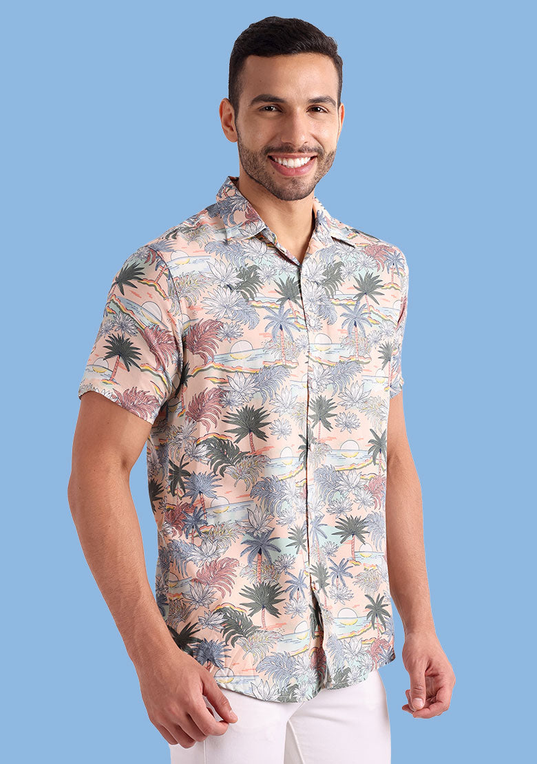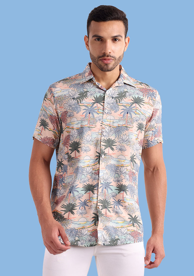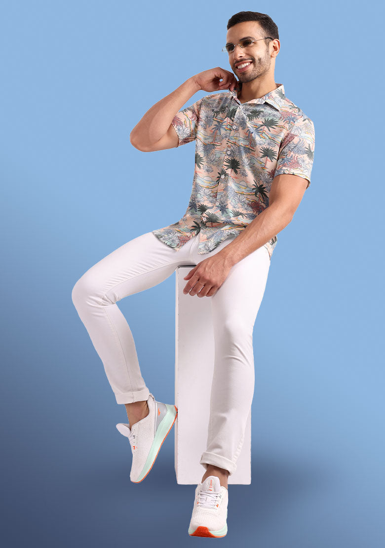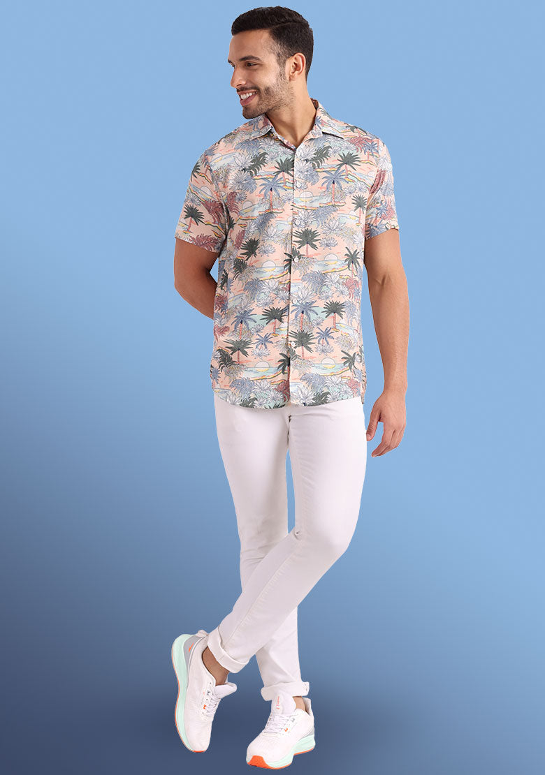The shirt is made from high-quality viscose rayon fabric that is both lightweight and breathable, ensuring that you stay cool and comfortable all day long. The curved hemline adds a touch of modern style, making it perfect for pairing with slim-fit jeans, trousers, or chinos for a stylish and effortless look.