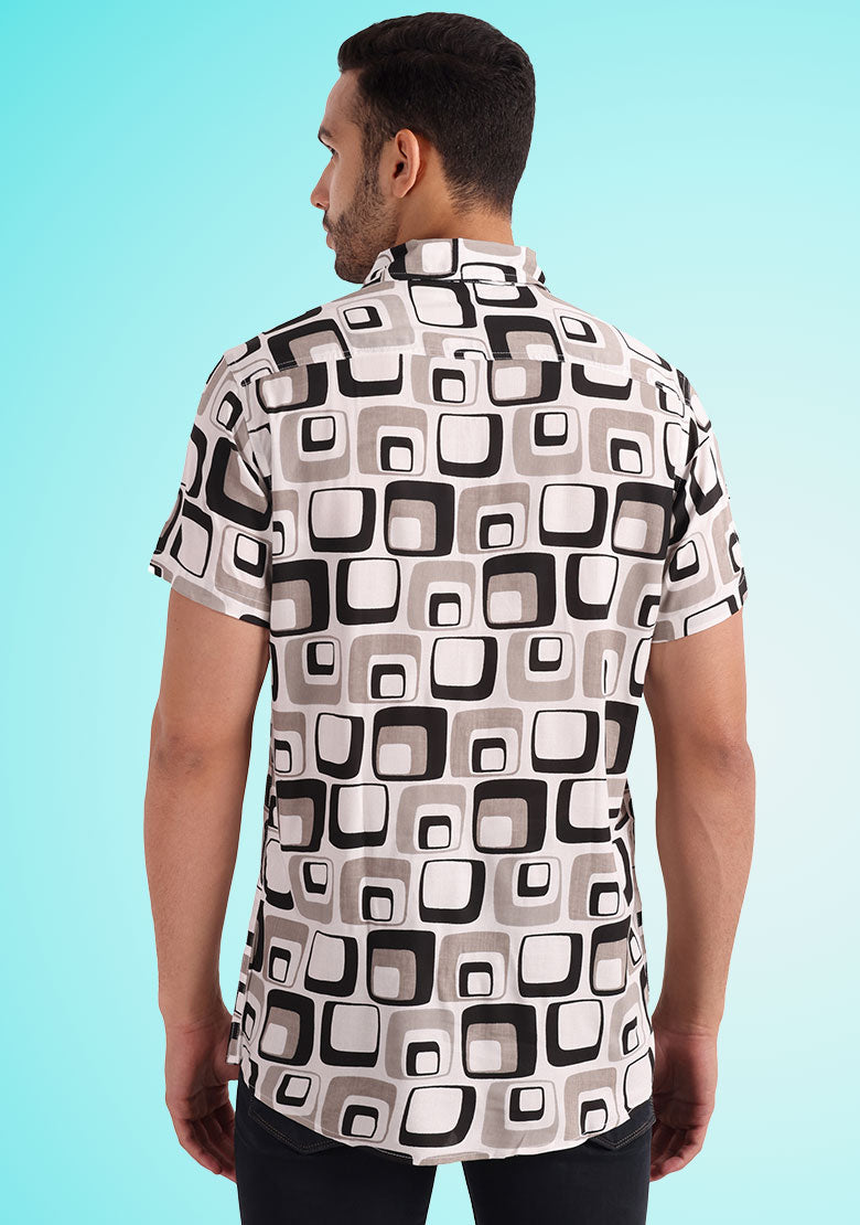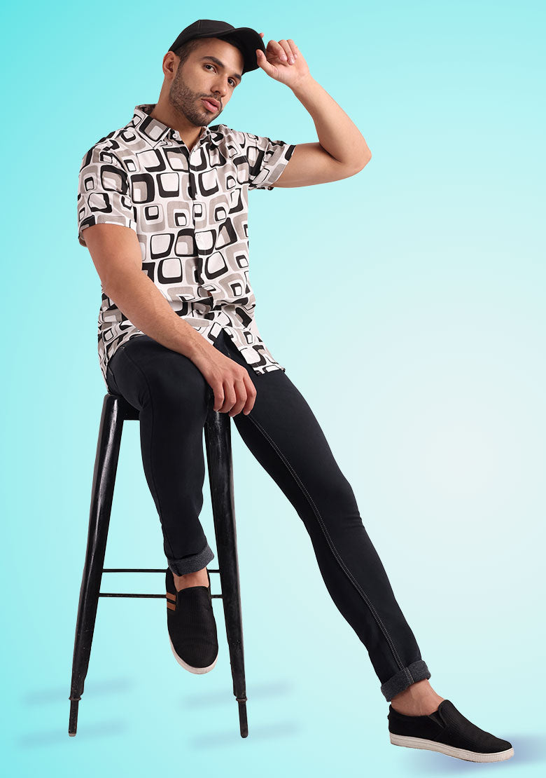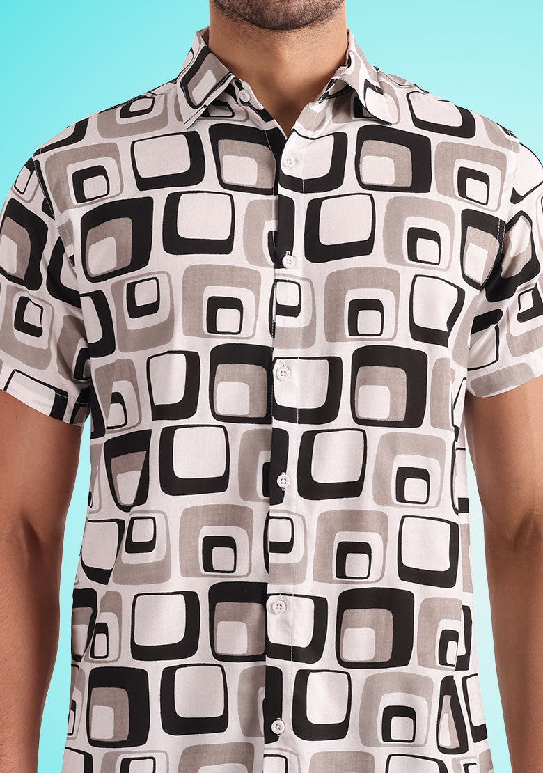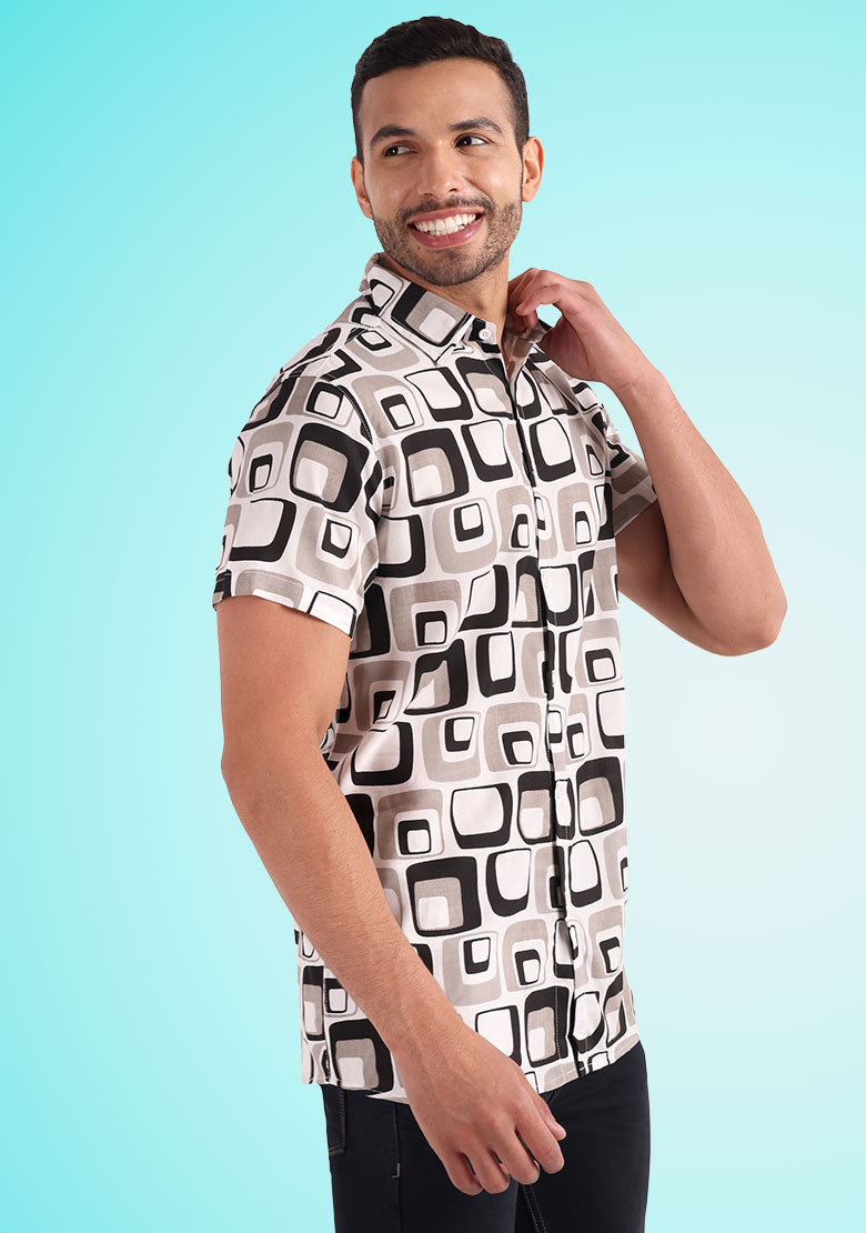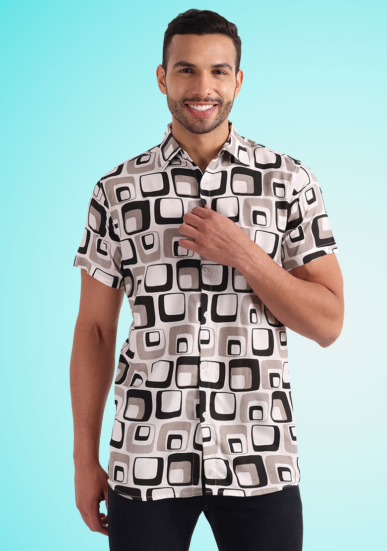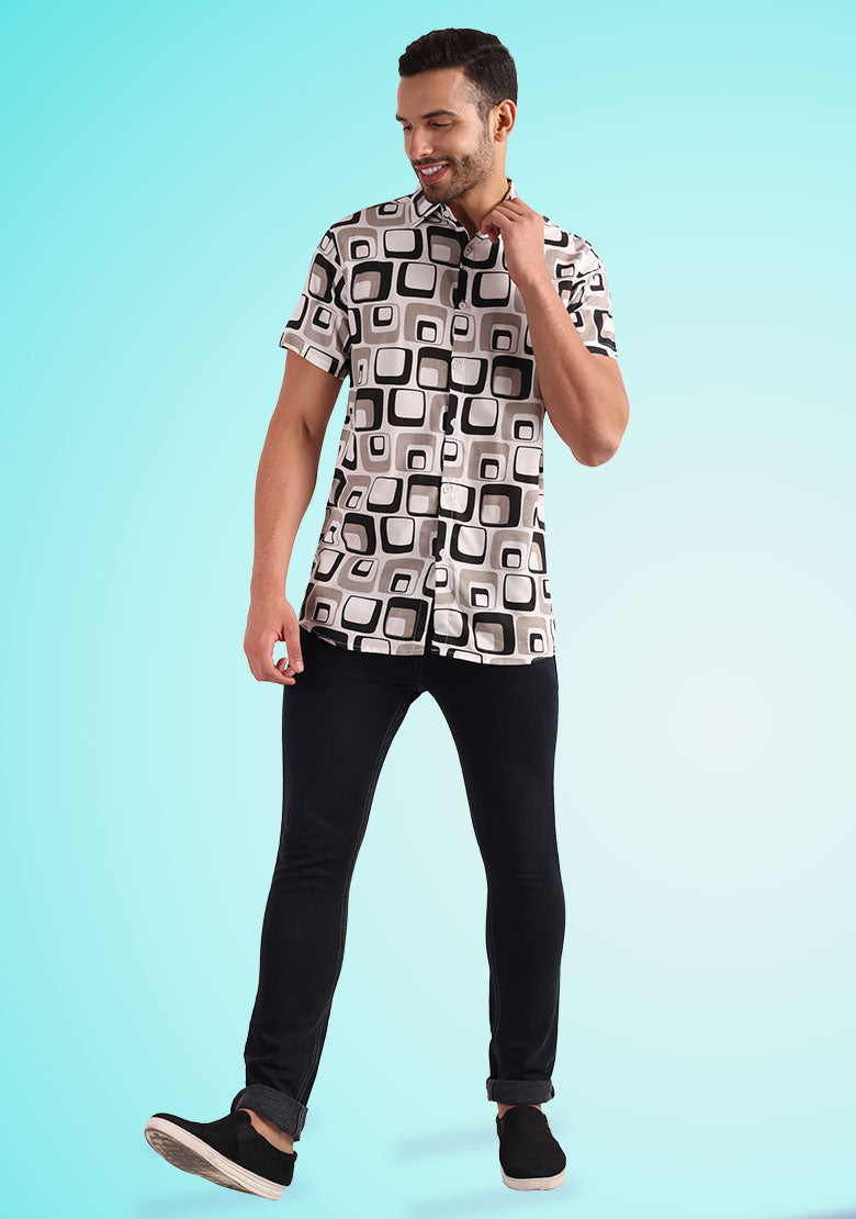 Introducing the all-new BhuviKoo Printed Button-Up Shirt in classic Grey! Experience the perfect blend of style and comfort with this exquisite shirt. Here are the key details: